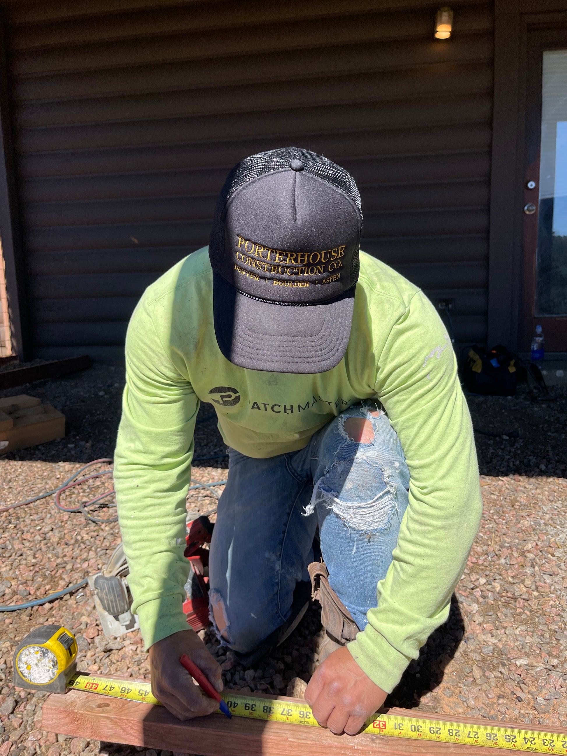 The classic black Porterhouse Construction Co. trucker hat is all about effortless style wherever you goโon the streets, the slopes, or the job site. Featuring a foam front with bold gold lettering, a black rope band across the front, a breathable mesh back, and an adjustable snapback, this hat combines timeless design with all-day comfort. From Denver | Boulder | Aspen, itโs built to move with you and elevate every look.